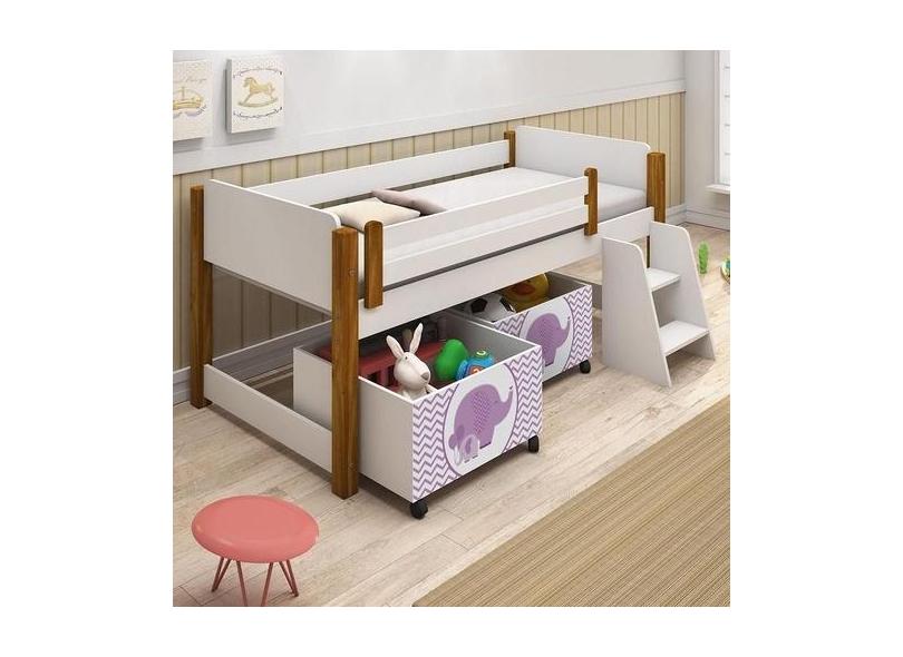 Cama Naty Branco/Mel com 2 nichos adesivadas filhote rosa e escadinha