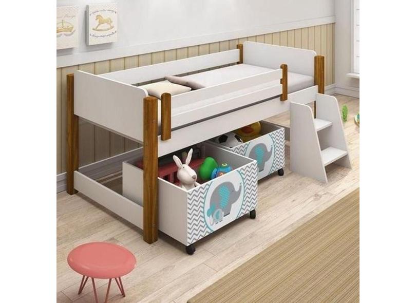 Cama Naty Branco/Mel Com 2 Nichos Adesivadas Filhote Verde E Escadinha