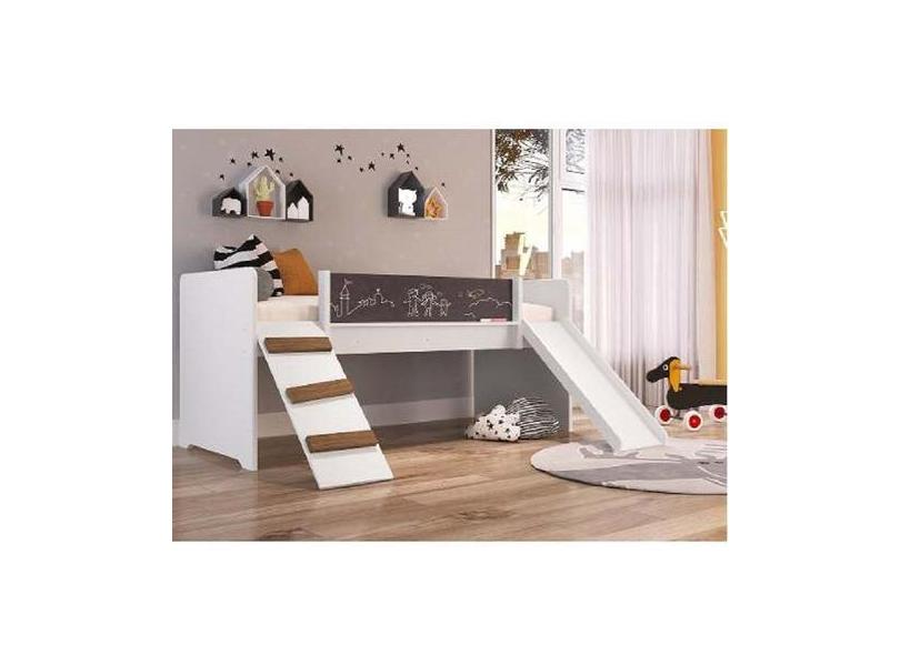Cama Playground Giz C/ Escorregador E Rampa By710 - Branco - Completa