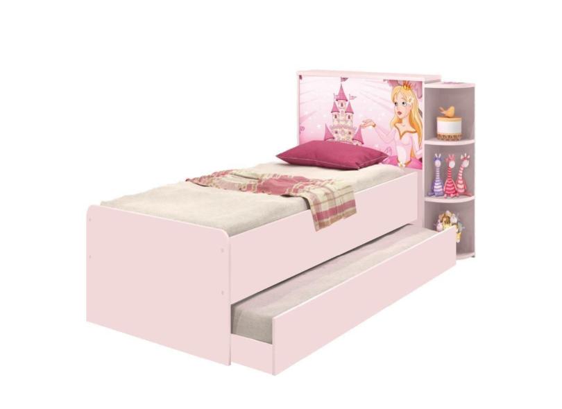 Cama Princesas Liz Com Cabeceira Baú 3 Prateleiras Decorativas Solteiro Rosa J&a Rosa