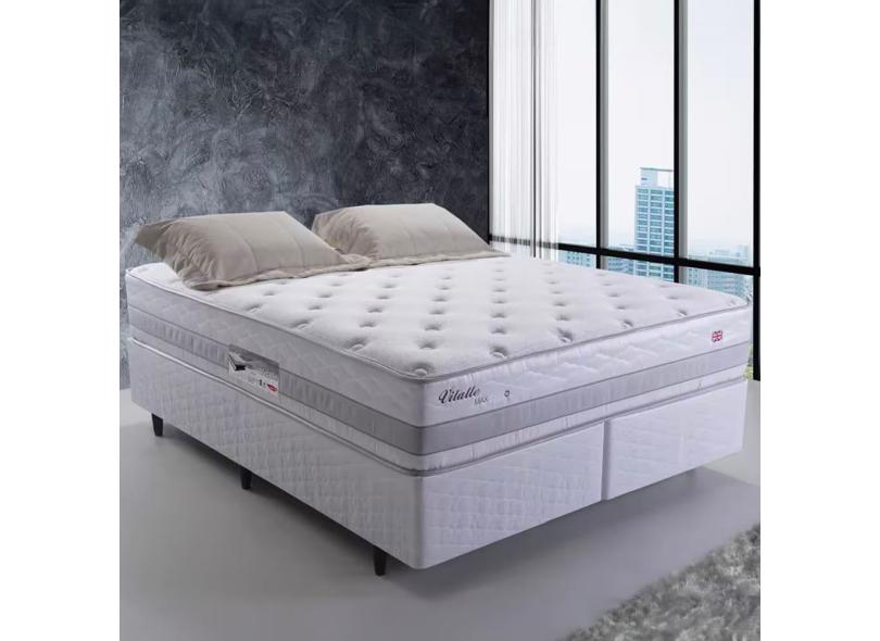Cama Queen Size Herval Vitalle com Revestimento em Tecido Poliéster, Laterais com Bordado Matelassê e Colchão com Molas Maxpring 31x79x198cm - Cinza