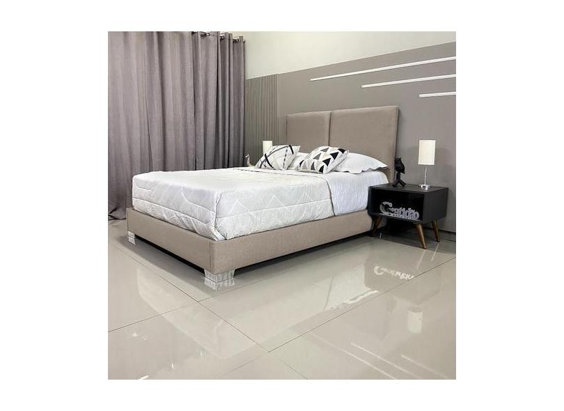 Cama Reforçada Com Cabeceira Módena Linho Bege Rbl Queen 1,60 X 2,00