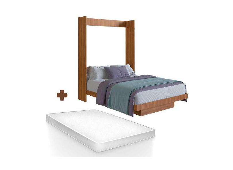 Cama Retrátil Embutida Casal Nogal Com Colchão Erias Shop Jm
