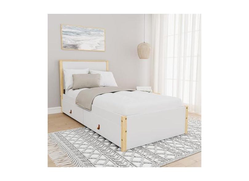 Cama Solteiro 2 Gavetas Íris Cabecasa Madeiramadeira Branco/Natural