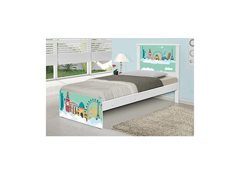 Cama Solteiro Adesivada Mundo Viagens com Colchão