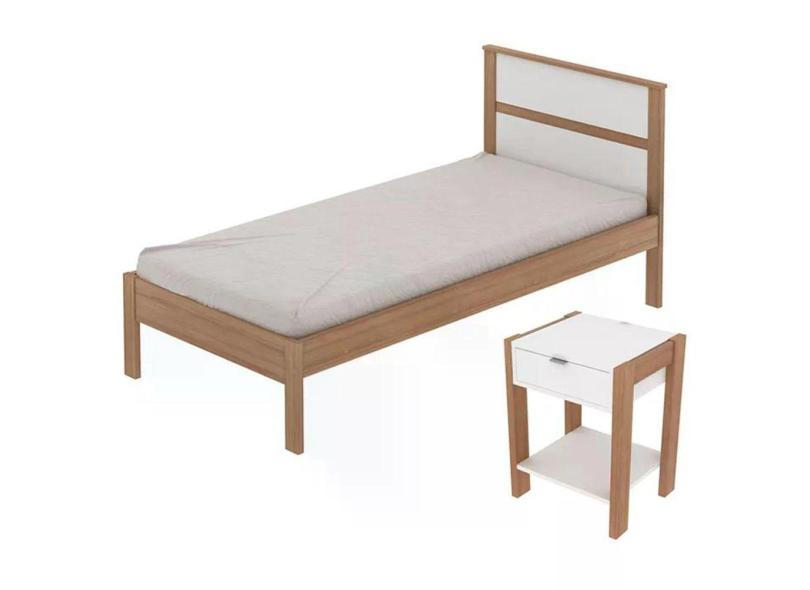Cama Solteiro Cm8004 E Mesa De Cabeceira Az1016 Qt2 Amendoa Branco Tecno Mobili Amendoa Branco