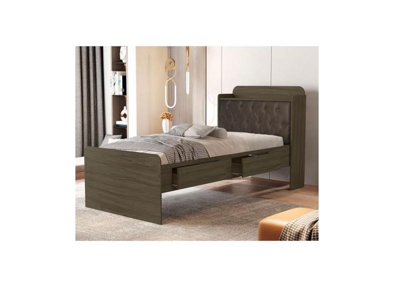 Cama Solteiro com Baú 2 Gavetas Tamires Castanho/Nogal