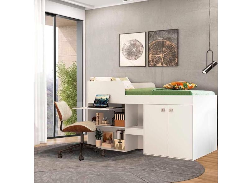 Cama Solteiro com Escrivaninha Branco Marlet Jm Móveis