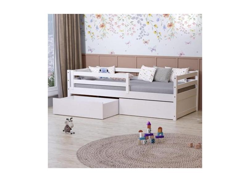 Cama Solteiro Dreams com 02 Gavetas e Grade de Proteção Madeira Maciça Branco Megamobilia