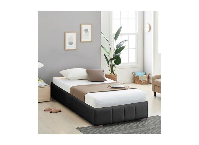 Cama Solteiro Estofada sem Cabeceira Uvaia Cabecasa Madeiramadeira Preto