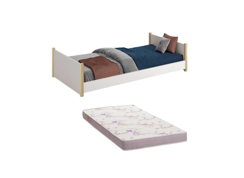 Cama Solteiro Evolutiva Ravi 2 Em 1 Com Pés Madeira Natural Branco Fosco Com Colchão - Reller