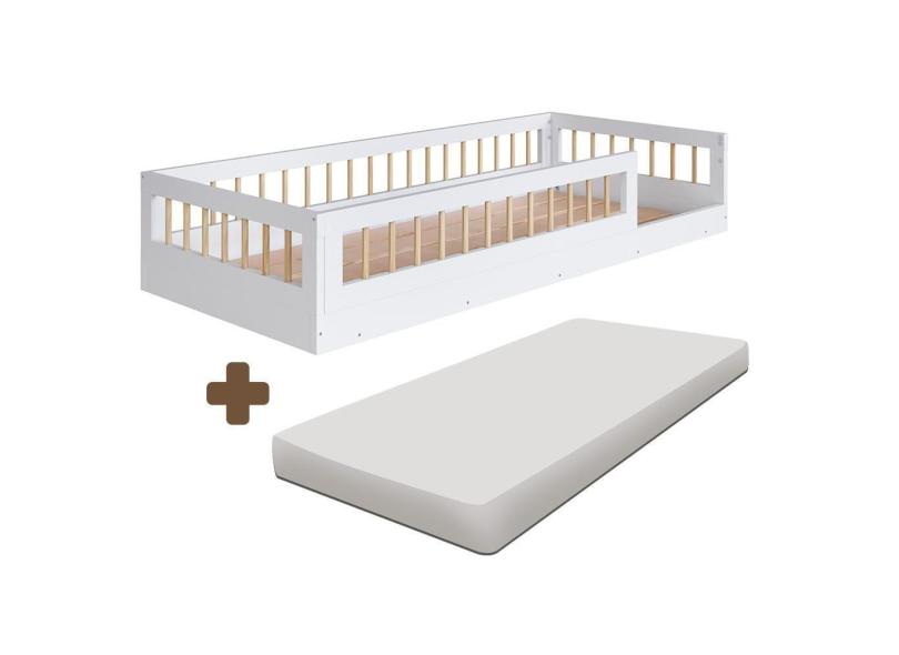 Cama Solteiro Infantil Com Grade De Proteção 84 x 195 cm Com Colchão Branco Sova Shop