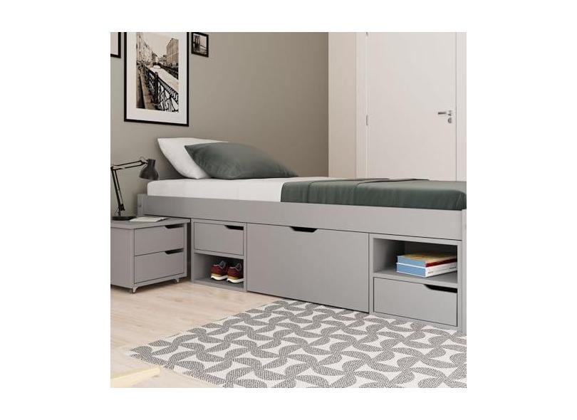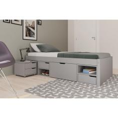O menor preço encontrado no Brasil para Cama Solteiro Madeira Maciça com 3 Gavetas e 1 Mesa de Cabeceira Charme Cool Grey atualmente é R$ 1.019,97.