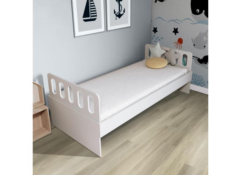 Cama Solteiro Mdf Bp Branco Com Cabeceira Megamobilia