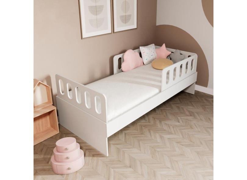 Cama Solteiro Mdf Branco Com 02 Grades E Cabeceira Anatômica Mobilistore