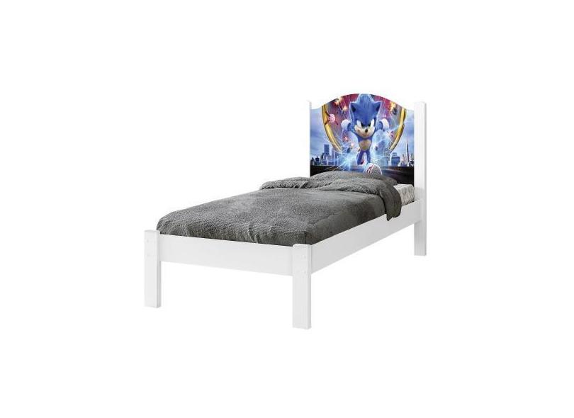 Cama Solteiro Menino Adesivada Sonic 100%Mdf Branca - JLB MOVEIS