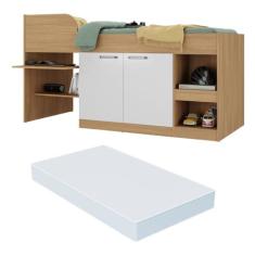 Cama Solteiro Multifuncional Com Colchão Incluso 2 Portas E Escrivanin