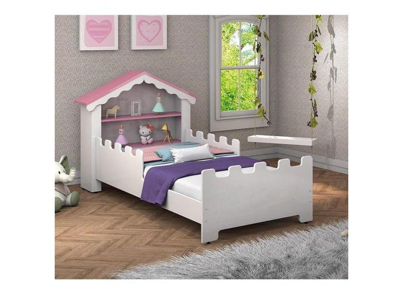 Cama Solteiro Princesa Com Colchão Branco/rosa- Vitamov