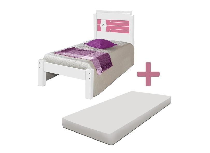 Cama Solteiro Reforçada Em Mdf Com Colchão Livia Branco E Rosa Carmolar