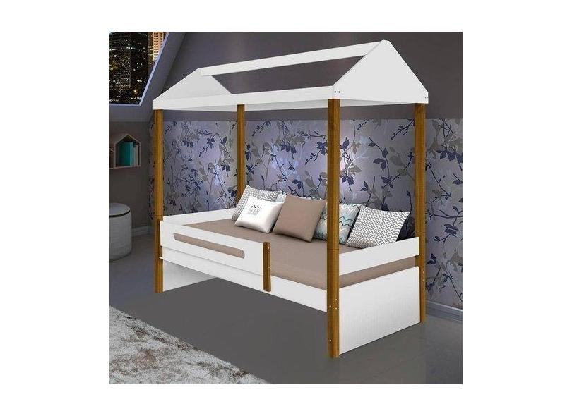 Cama Solteiro Sara Branco Mel com Colchão - Divaloto