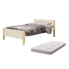 Cama Solteiro Simba Areia Fosco Pés Madeira Natural Com Colchão D20 - Reller Móveis Areia Fosco