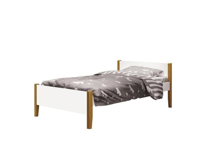 Cama Solteiro Simba Branco Fosco Com Pés Amadeirado - Reller Móveis Branco Fosco