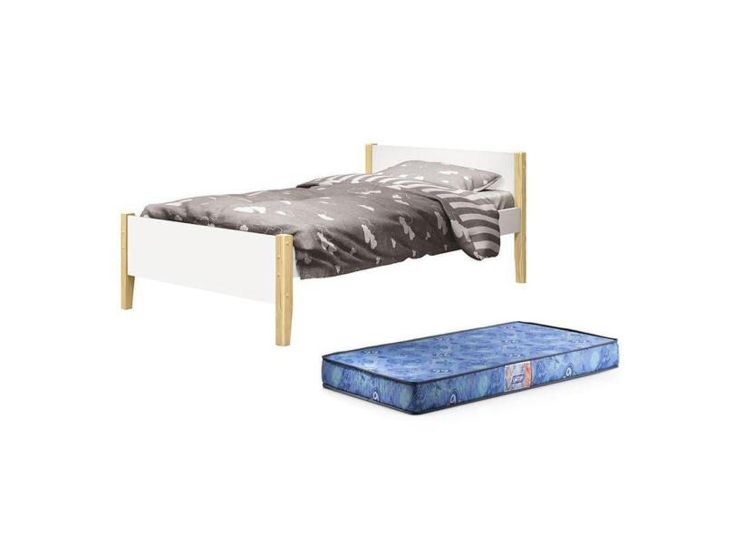 O menor preço encontrado no Brasil para Cama Solteiro Simba Branco Fosco Com Pés Madeira Natural E Colchão D20 - Reller Móveis Branco Fosco atualmente é R$ 779,45.