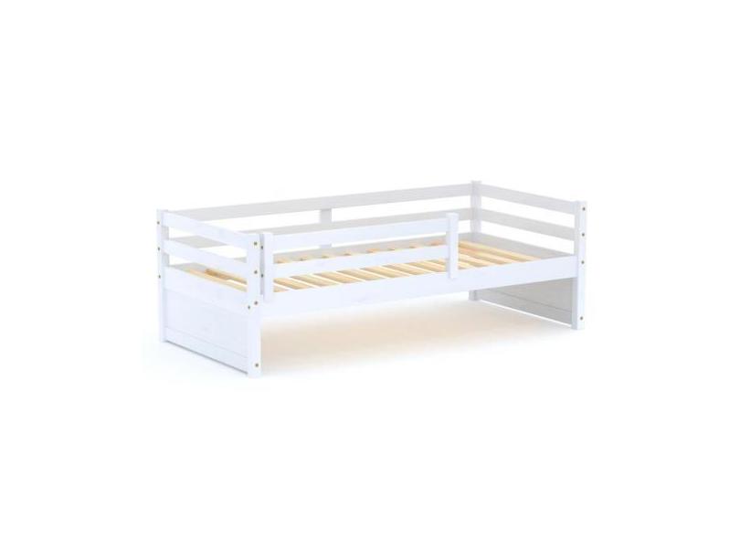 Cama Solteiro Slim Com Grade De Proteção Madeira Maciça Branco Housin