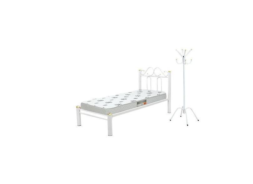 Cama Solteiro Tubular Com Estrado de Ferro Branca Marcheli