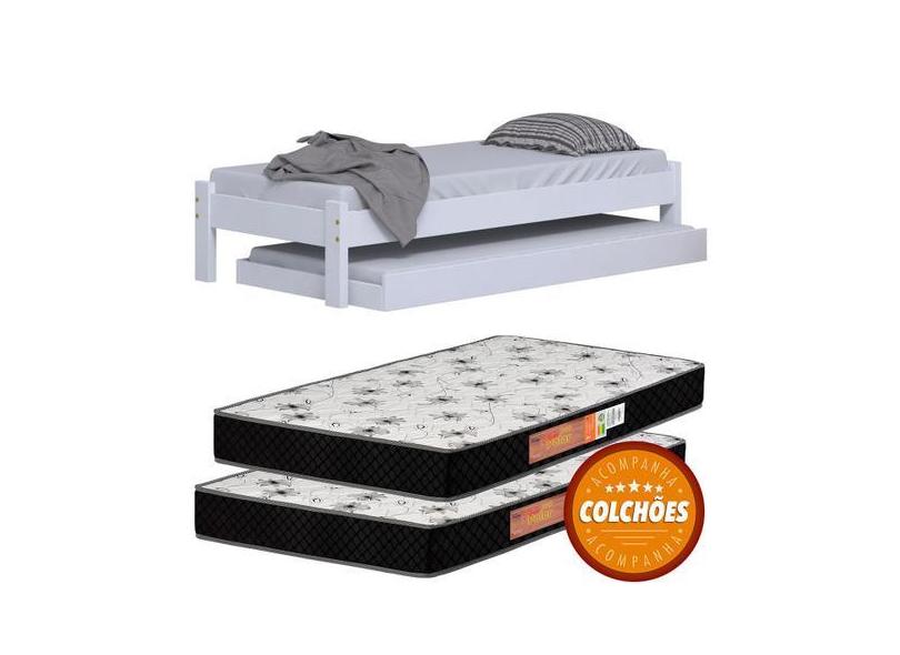 Cama Solteiro Turca Com Auxiliar E 2 Colchoes Cor Branco - Nemargi