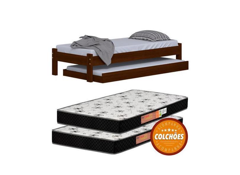 Cama Solteiro Turca Com Auxiliar E 2 Colchoes Cor Castanho - Nemargi