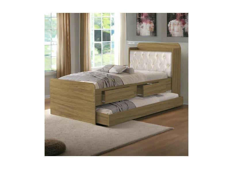 Cama Tamires Freijó com Auxiliar Capitonê e 02 Colchões - VJ Móveis