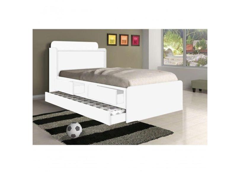 Cama Tamires Solteiro 0,88cm Com Auxiliar Branco E Dois Colchões - Cambel