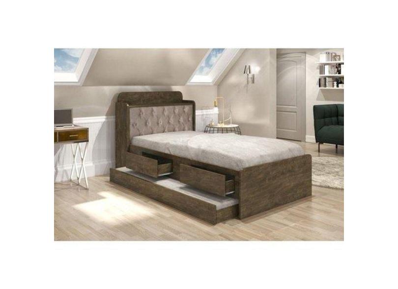 Cama Tamires Solteiro 0.88cm Com Auxiliar Castanho Com Capitonê Bege Dois Colchões- Cambel