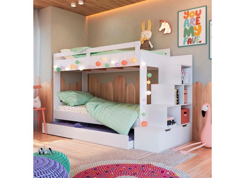 Cama Treliche Solteiro Com 03 Colchões E Escada Branco Redford Shop Jm