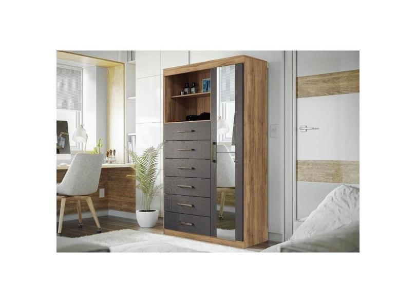 Cômoda Solteiro Marabá 1.6 C/ 1 Porta 2 Nichos E 6 Gavetas C/ Espelho Atacama/grafitte Santos Andirá