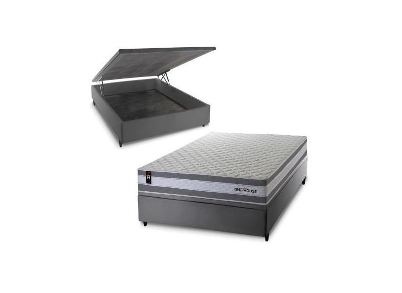 Conjunto Box Baú Alpine Cinza 138X188x72 C/ Molas Ensacadas - King Hou