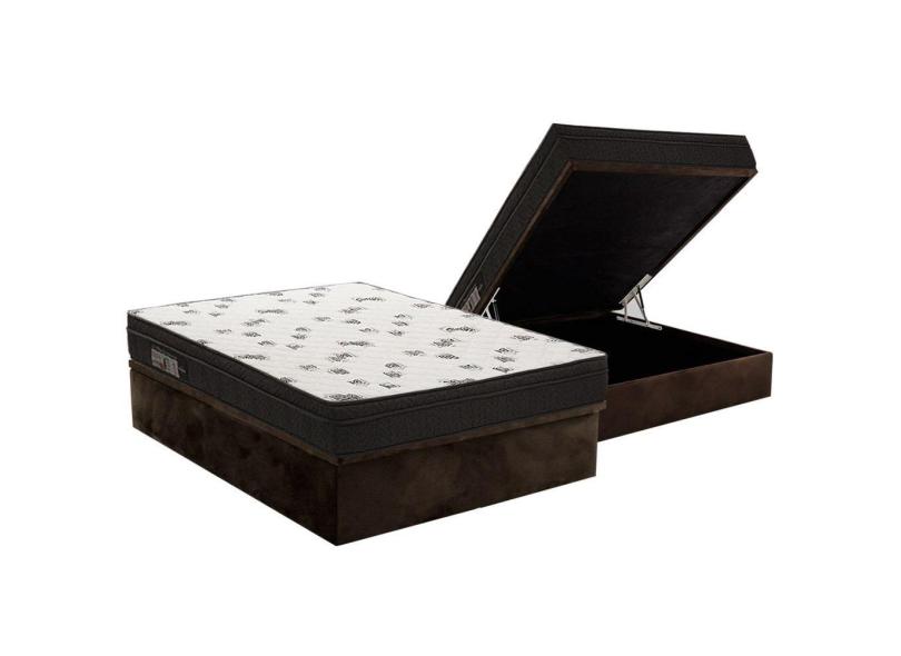 Conjunto Box Baú Casal: Colchão Espuma Ortobom D45 Ligh Saúde Ortopillow + Base crc Suede Brown(138x188)