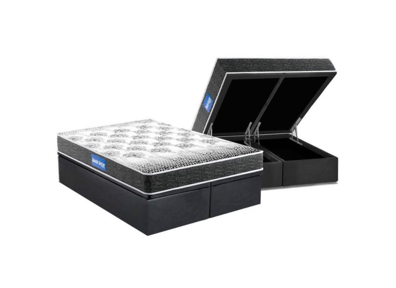 Conjunto Box Baú Queen: Colchão Espuma Probel D20 Guarda Costas Resistente Black + Base CRC Suede Gray(158x198)