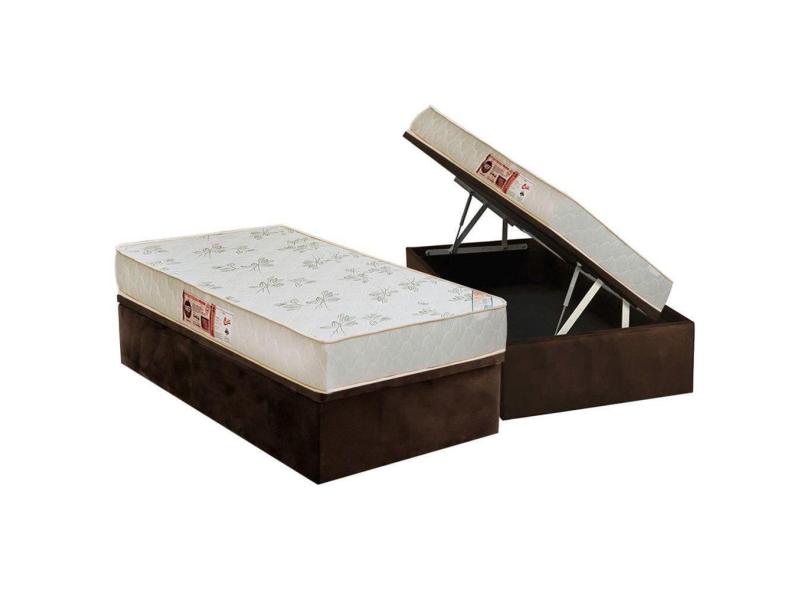 Conjunto Box Baú Solteiro: Colchão Espuma Castor D33 Sleep Max Relax + Base CRC Suede Brown(88x188)
