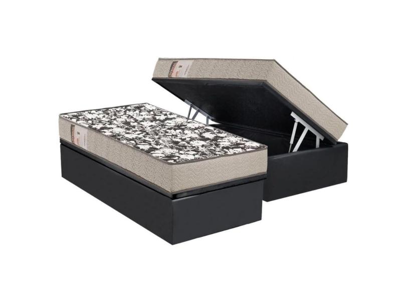 Conjunto Box Baú Solteiro: Colchão Espuma D26 Physical Ultra Resistente + Base Crc Suede Gray