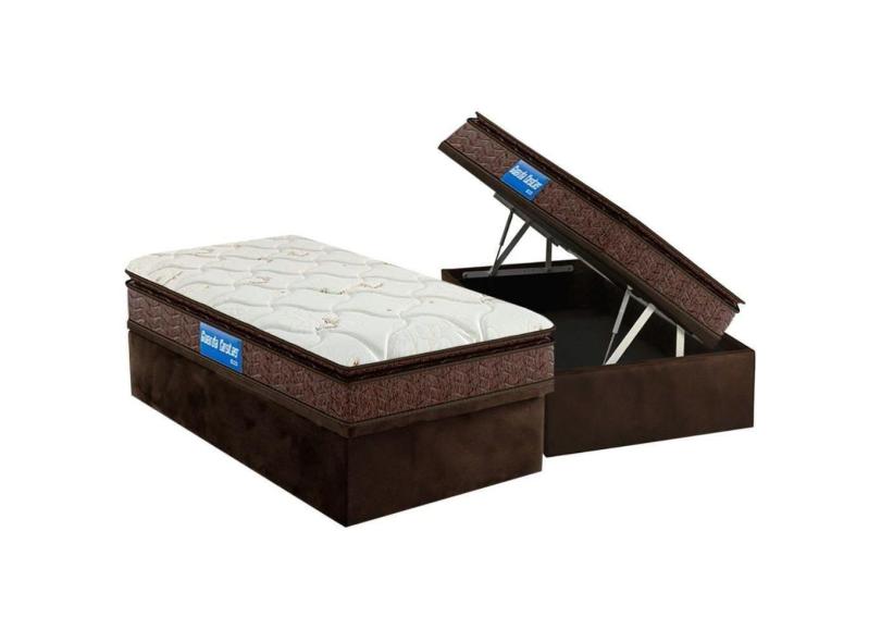 Conjunto Box Baú Solteiro: Colchão Espuma D33 Plus Pillow Top + Base Crc Suede Brown(88x188)