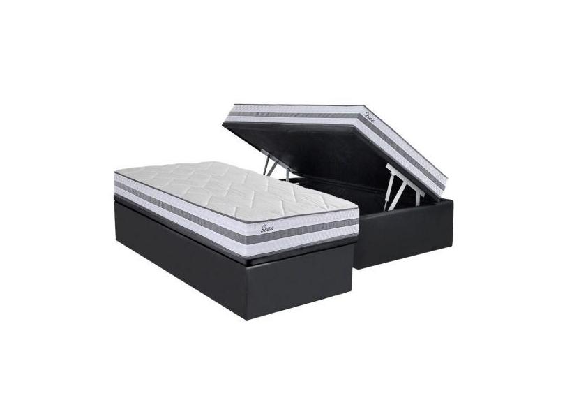 Conjunto Box Baú Solteiro: Colchão Espuma Herval Molas Ensacadas Parma