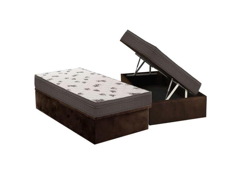 Conjunto Box Baú Solteiro: Colchão Espuma Ortobom D45 Light Saúde OrtoPillow + Base CRC Suede Brown(88x188)