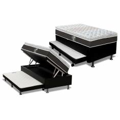 O menor preço encontrado no Brasil para Conjunto Box Baú Solteiro: Colchão Molas Castor Pocket Class Híbrido + Base crc Courano Black(88x188) atualmente é R$ 2.434,25.