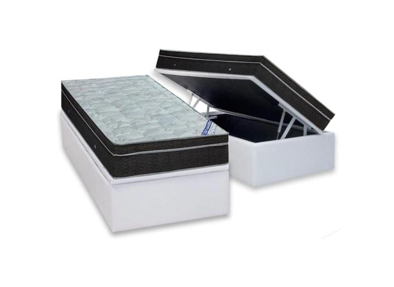Conjunto Box Baú Solteiro: Colchão Molas Ortobom Nanolastic Light + Base CRC Courano White(88x188)