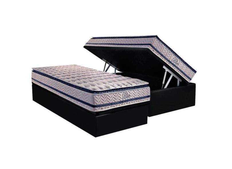 Conjunto Box Baú Solteiro Colchão Molas Paropas Ensacadas Blue + Base Crc Black 88x188