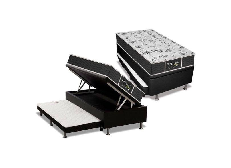 Conjunto Box Baú Solteiro: Colchão Molas Probel Prolastic ProDormir Sleep Black + Base CRC Suede Black (88x188)