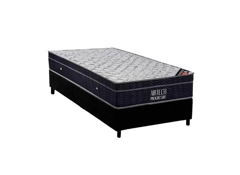 Conjunto Box Solteiro: Colchão Molas Ortobom Nanolastic Airtech Progressive + Base CRC Suede Black(88x188)