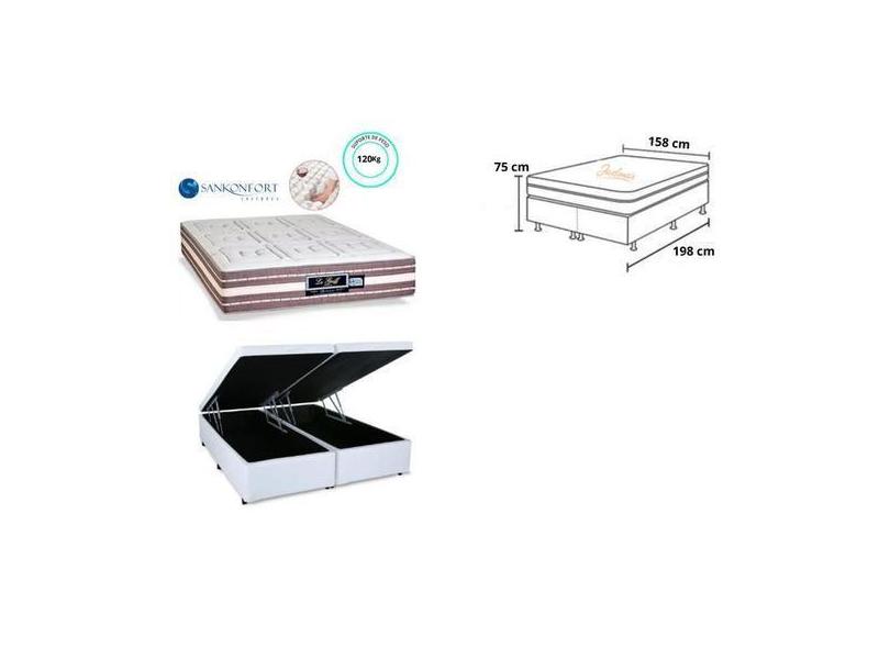 Conjunto Cama Box Baú Casal Queen + Colchão Sankonfort Le Griff Linha